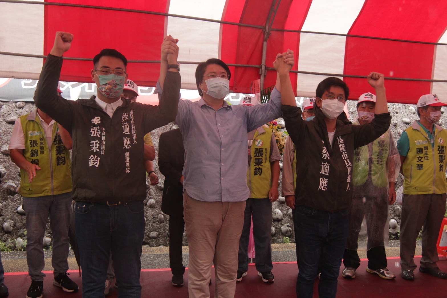 今(9/25)日基隆市長候選人蔡適應與市議員張秉鈞、市議員候選人許睿慈、市議員候選人林坤明,分別成立聯合競選總部,連江縣長候選人李問到場力挺,蔡適應表示,基隆和馬祖有緊密相連的航運關係,特別是生活圈,有許多戶籍在馬祖,人住在基隆的朋友,期盼年底的縣市長選舉,大家來力挺李問和大黃魚戰隊、力挺適應和基隆隊市議員。