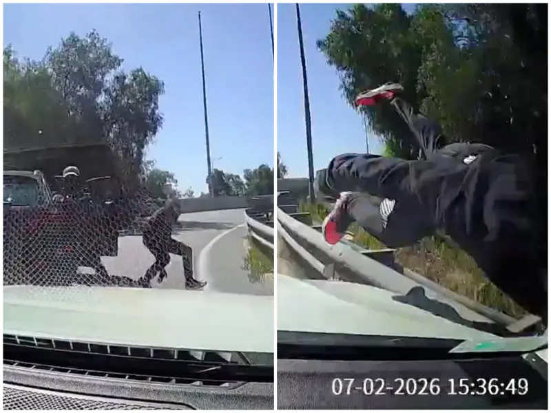 智利公路驚魂!持槍匪攔車反遭撞飛
