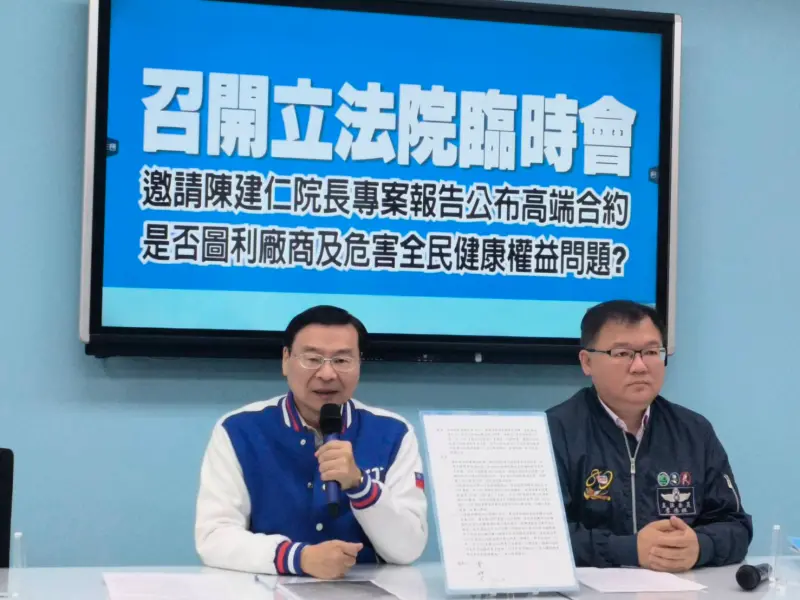 國民黨團喊開臨時會 邀陳建仁公布高端合約