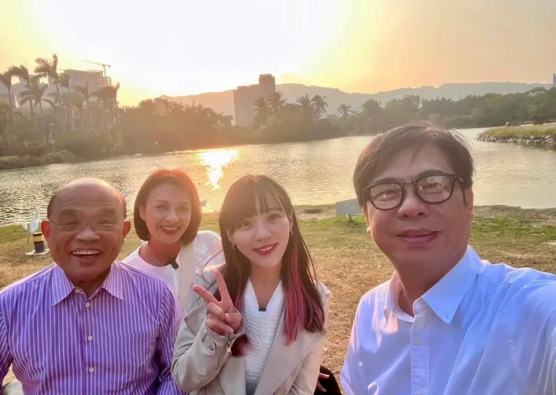 蘇貞昌黃捷騎車賞湖畔 網友稱選情亮上加亮