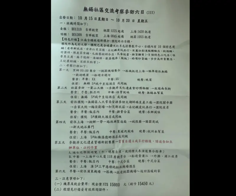 介入大選? 議員爆里長無錫旅遊團僅1.5萬