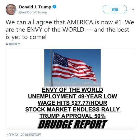 - 我們所有人都能同意,美國現在是世界第一了。我們是全世界嫉妒的對象,好事還在後頭!
