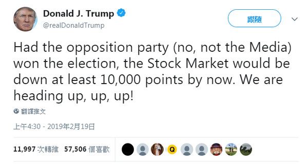 - 如果反對黨(不,不是媒體)贏得選舉,股票市場現在肯定下跌至少1萬點。我們卻引領向上漲、漲、漲