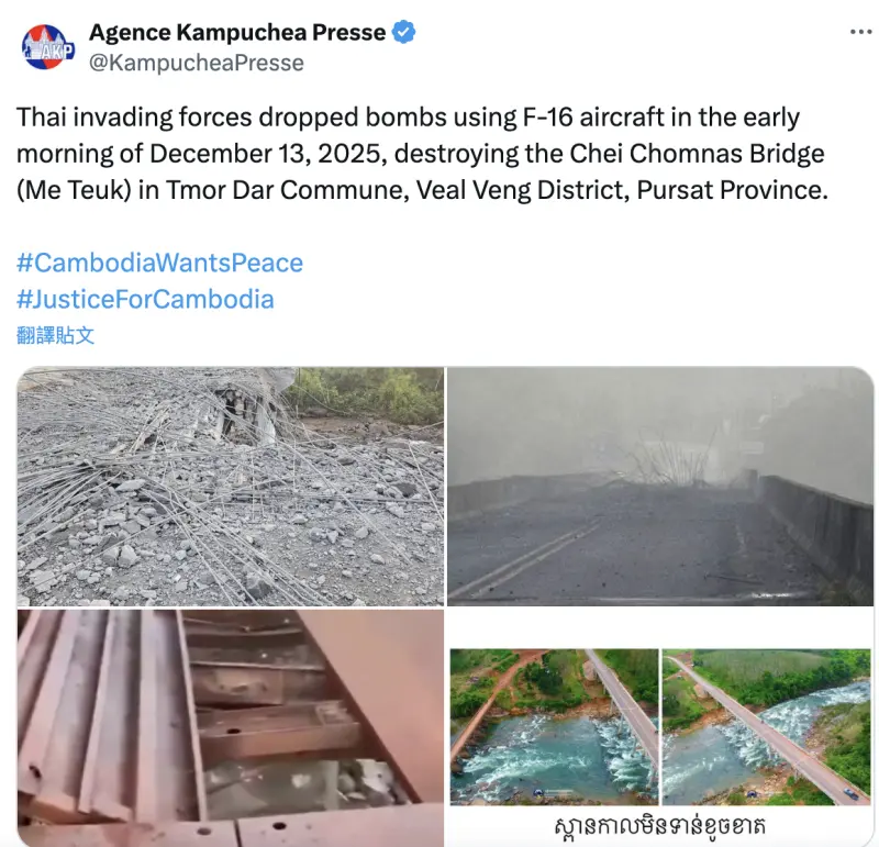 泰柬交火升高 F-16轟橋釀傷
